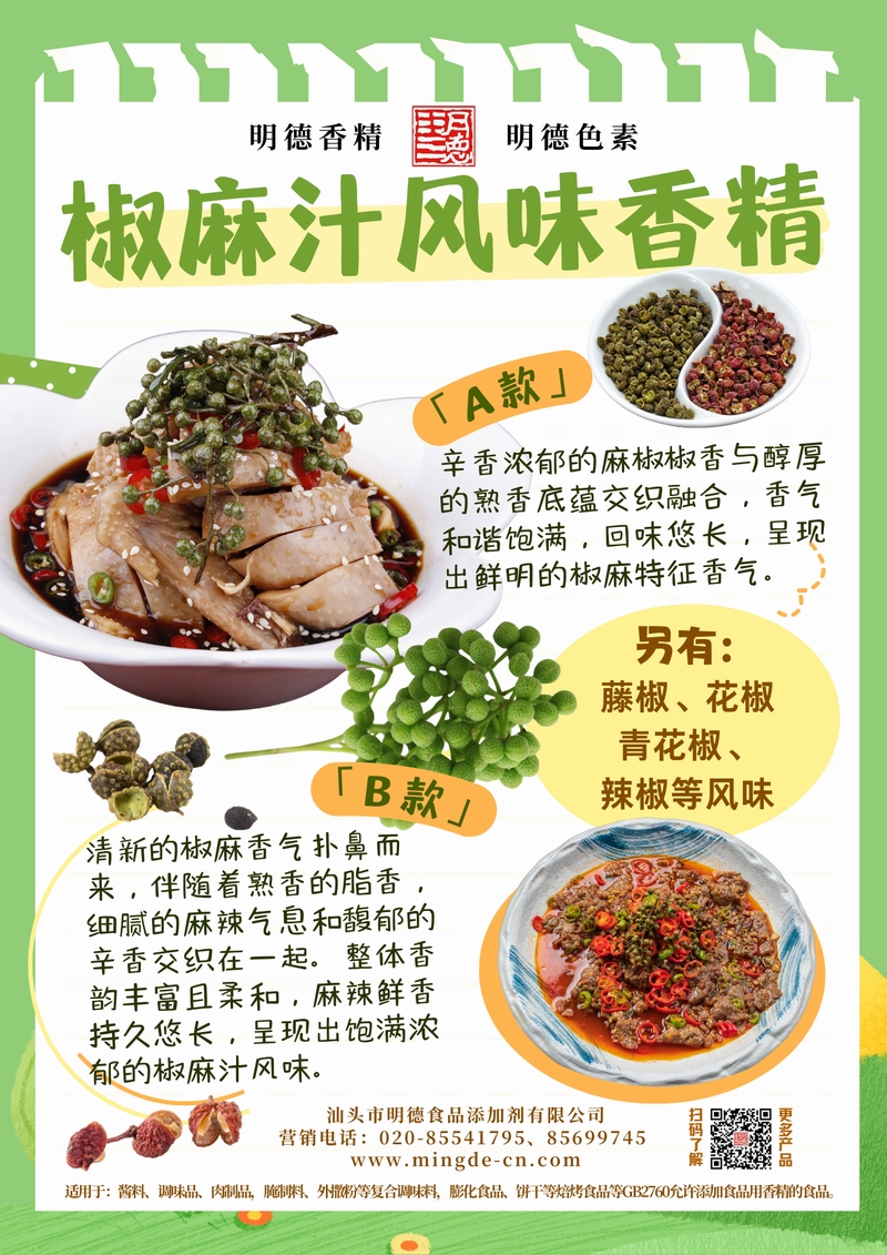 明德椒麻汁風(fēng)味香精 | 鮮香麻辣 平衡濃郁與層次汕頭市明德食品添加劑有限公司推出的椒麻汁風(fēng)味香精,精準(zhǔn)還原花椒與辣椒的獨(dú)特風(fēng)味,融合醇厚底香與豐富層次,適用于多類調(diào)味醬、鹵味、川味餐飲預(yù)制菜及休閑食品,為B端工廠提供穩(wěn)定且可控的麻辣風(fēng)味解決方案。